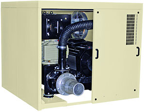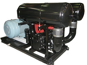 High vacuum without water or oil sealing Hibon air injection positive displacement blower package “VP” are the only dry blowers capable of attaining 28" Hg vacuum/93% vacuum. They are self-cooling, requiring no vacuum relief valve and are designed for continuous industrial use 24 hours a day. The self-cooling design enables warm gases handling and eliminates or reduces the need for pre-cooling. Theses blowers are very efficient for vacuuming a large variety of products, wet or dry